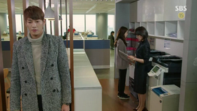 #### Reporter Sung menanyakan In ha tentang ponselnya yang tidak dapat Dia temukan. Bum Jo menguping pembicaraan reporter Sung dengan In Ha.